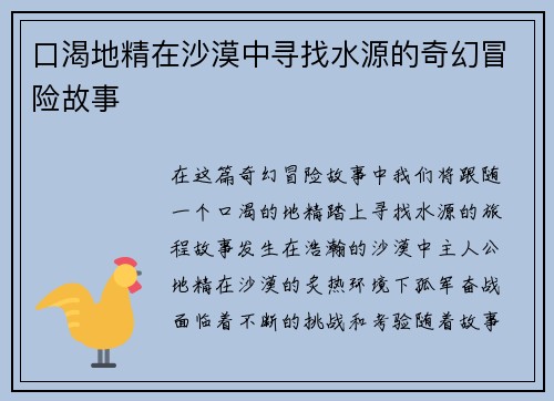 口渴地精在沙漠中寻找水源的奇幻冒险故事