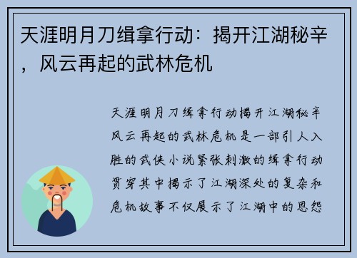 天涯明月刀缉拿行动:揭开江湖秘辛,风云再起的武林危机